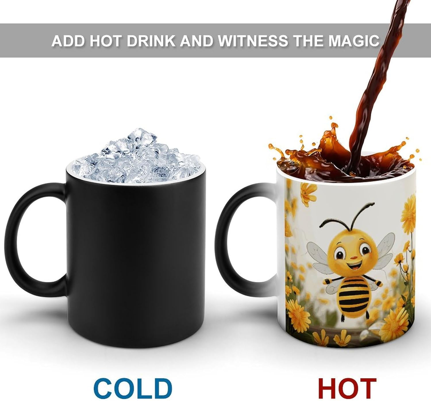 The personalized color-changing cup is made of ceramic, which feels as soft as jade and gives people a comfortable and friendly texture. Its good heat preservation performance can lock the temperature of coffee for a long timeFunny pattern print design, when filled with hot water, the cute pattern will appear and the colors will become bright.This color changing art coffee tea mug are a fun and unique addition to any home or office, adding a touch of fun to any table setting