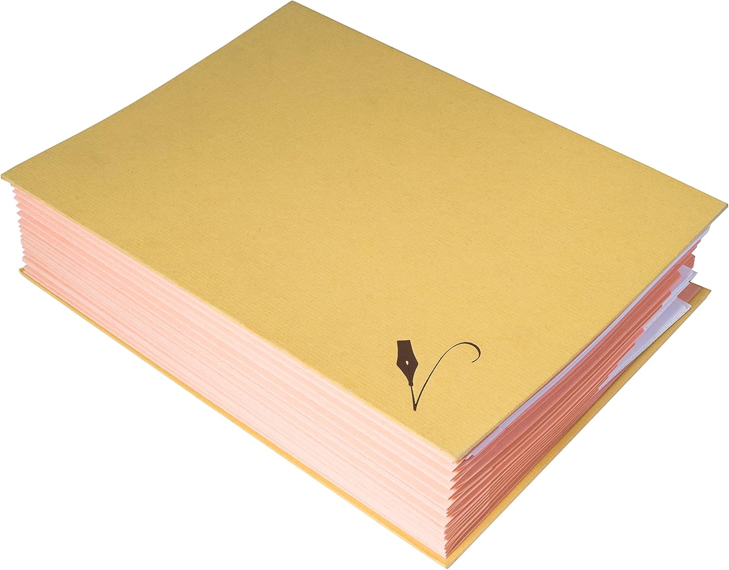 Exacompta Forever Signature book is made from recycled Kraft paper with the interior pages being made from 300 gsm pink recycled paper. Pages within the book have 3 perforations to detect the presence of paper once inserted. Book is 24 x 32 cm in size and can hold A4 documents. Book has an expanding spine to allow the whole book to be used for filing documents. 20 compartments.