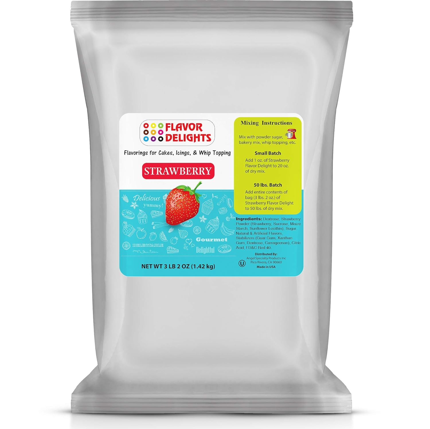 Angel Specialty Products proudly presents Flavor Delights! Flavoring powders for cakes, muffins, donuts, gelatin, icing, waffles, pancakes and whip topping.✔ Excite your guests. Give them a choice... with new delicious flavors for your cakes, donuts, muffins, gelatin, icing, and whip topping. It's easy!✔ Just add Flavor Delights flavoring powder into your cake, doughnut, or muffin mix and bake as per normal baking procedures.✔ Mix it into icings, gelatin, whip topping, or cheesecake for an easy way to offer exciting new flavors.✔ Enhance your desserts with Flavor Delights!Benefits:Increase the variety of your baking creations with authentic, tasty, high quality flavors.Simple and easy way to add popular flavors to your choice of dry bakery mixes or custom recipes. Limitless creative possibilities.Available Flavors:StrawberryPistachioPassion FruitBlueberryCoconutLemonPumpkin Pie (seasonal)