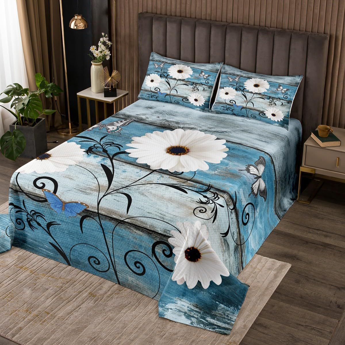 Best blessings: Makeover your bedrooms every season with our bedspread sets. Perfect item for your room,girls boys youth room,master bedroom. Size information: 1 Twin size quilted bedspread 68" W X 90" L and 1 quilted pillow sham 30" W X 20" L . 1 Queen size quilted bedspread 90" W X 90" L and 2 quilted pillow shams 30" W X 20" L . 1 King size quilted bedspread 104" W X 90" L and 2 quilted pillow shams 36" W X 20" L . Useful and practical: A luxurious product for homes,dorm rooms,hotels,guest rooms.Practical to use for being polyester,feels like cotton which is super soft and breathable. No chemicals used,no dye substance harming the health of you or your family. Unique design: Vivid colors won't fade thanks to new 3d digital printing methods.These unique designs match well with various color palettes of your rugs,curtains,headboard,furniture,and all other decor accessories. Personalized: As manufacturers of digital printed home textiles,we follow current trends and bring you the latest home fashion. Note: The bedspread and pillow shams are printed on the front side only,the back of them are white colored.Comforter is not included in the set.