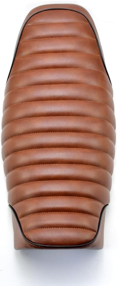 Motorcycle refit retro seat cover for vintage style assembly.Fits flat seat designs.Made from waterproof leather material.Includes one seat cushion and one set of mounting parts.